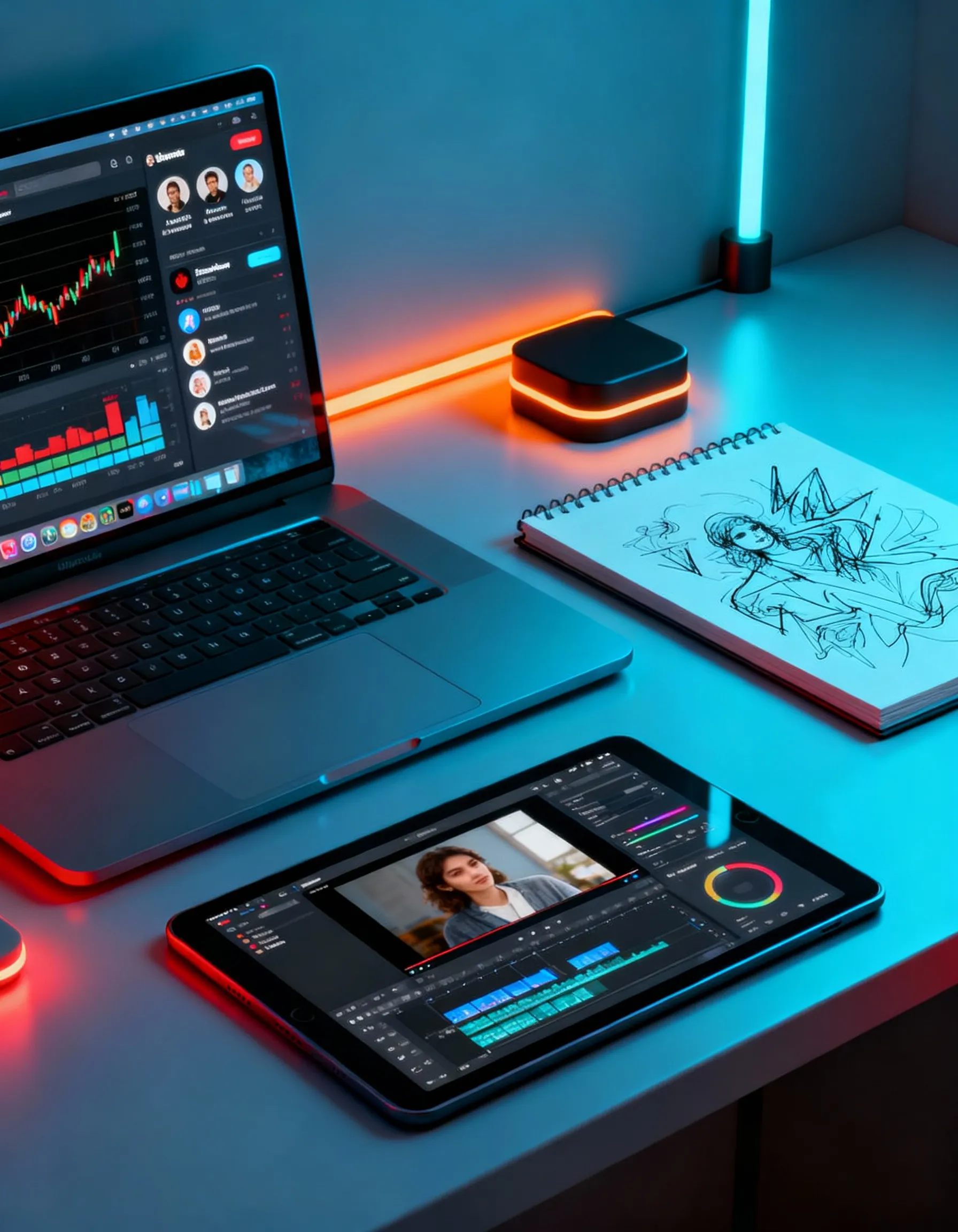 Atuamos nas principais plataformas — Meta Ads, Google Ads, TikTok Ads — construindo campanhas segmentadas e criativas, com funis de conversão claros e metas definidas.